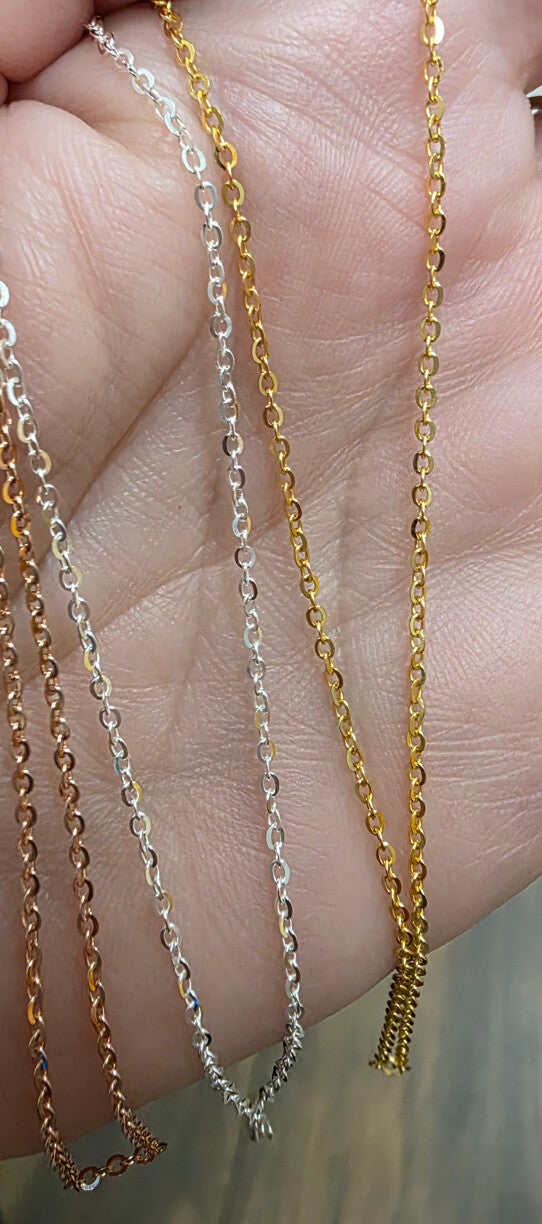 Fijn kettinkje, 925 zilver in de kleuren: gold, rose en zilver. 40+5 cm lang.